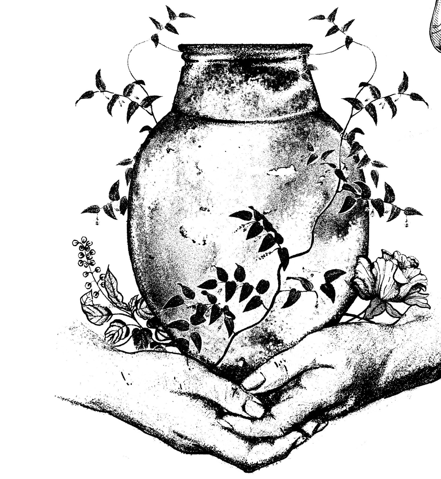 - Una jarra de barro, con flores naturales.
