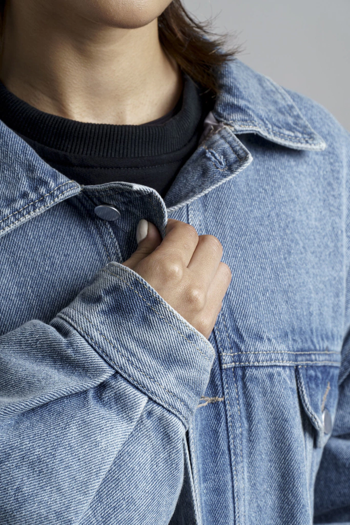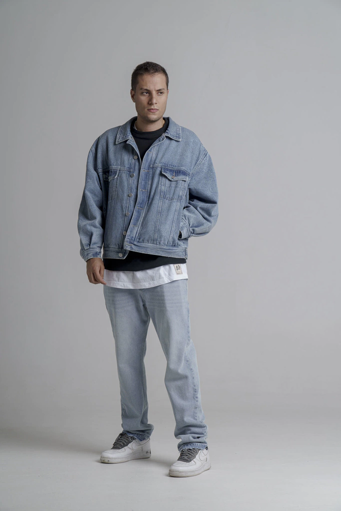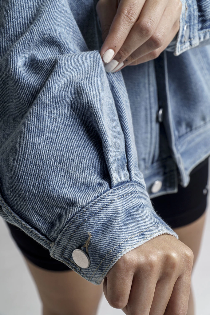 - Lavado claro y silueta amplia corte a la cintura.